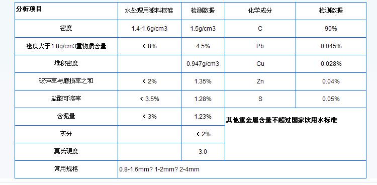 無煙煤濾料在水處理中起的作用好壞,直接影響濾過的水質(zhì),所以在選擇無煙煤濾料的時候,質(zhì)量必須符合國家相關(guān)標準。下為建設(shè)部水處理濾料監(jiān)督檢測中心頒布的CJ/T43 -2005《水處理用濾料》中無煙煤濾料的相關(guān)標準。