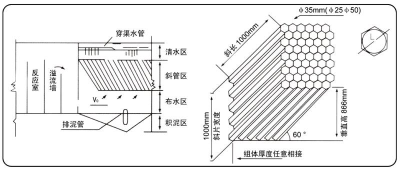 3. 當(dāng)斜管管長為1米時,有效負(fù)荷按3-5噸/米2·時設(shè)計。V0控制在2.5-3.0毫米/秒范圍內(nèi),出水水質(zhì)最佳。